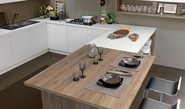 Kalì e Una cucina Che coniuga Elementi tipici della Tradizione con le ambientazioni contemporanee. Reinterpretare Gli Elementi classici come l'anta dogata e le essenze materiche integrandoli alle Tecnologie moderne venire la presa maniglia ed un 30 ° il Sistema Gola e la Scommessa Che Kalì SI ripromette di Vincere. Lavorando Attraverso Una sottrazione degli Elementi di decoro mantiene invariato il Calore tipico delle cucine di un tempo. Un'anima tradizionale interpretata con laminati Che ricalcano in maniera, perfetta la praticità del rovere abbinata una Materiali innovativi in PET lucido ed opaco e piano in Fenix.