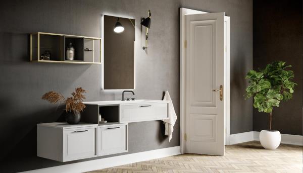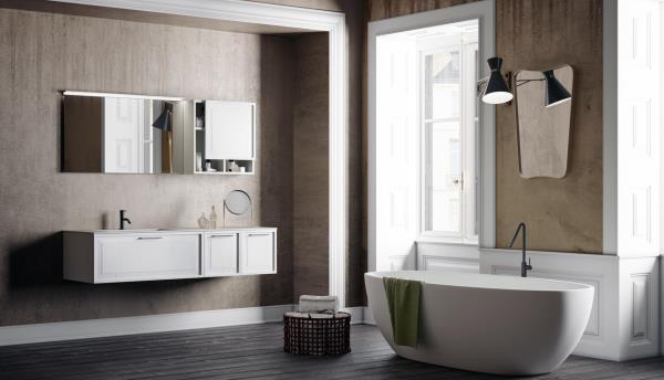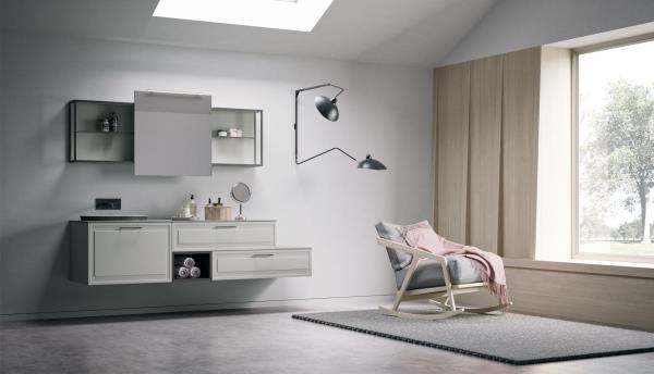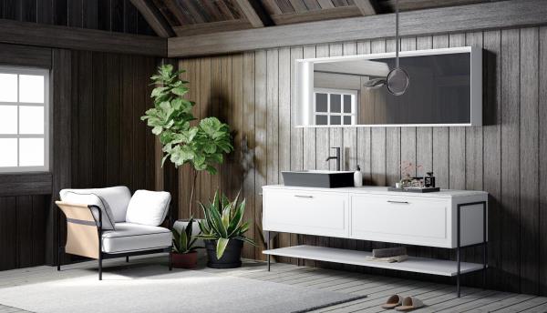 Roma reinterpreta il classico in chiave moderna con l’introduzione della struttura tubolare “Structura”. Un arredo bagno che mette l’accento sui giochi geometrici del telaio metallico, esplorando nuove contaminazioni tra urban, minimalismo nordico e neoclassico italiano. Un nuovo concept che si racconta attraverso le forme pulite e rigorose dell’anta a telaio e del nuovo elemento metallico.
