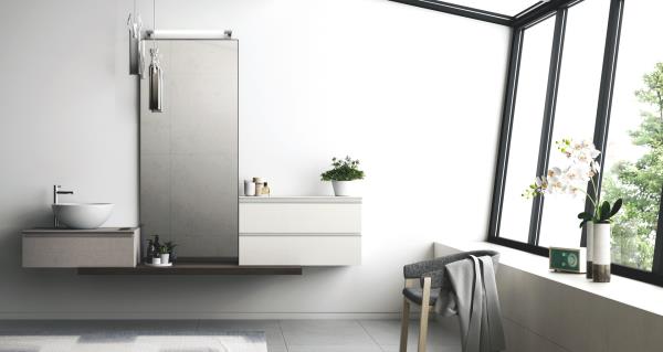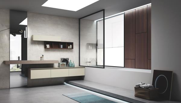 Puntotre propone il sistema gola con una propria linea sul bordo del frontale, che rende percepibile lo spessore di 5mm. La gamma delle finiture si estende dai melaminici 3D ai legni pregiati, passando per l’intera gamma colore RAL.La pulizia delle linee, unita all’assenza di componenti metallici sul frontale, giocano un ruolo determinante nella scelta di questo sistema adatto ad ogni ambiente bagno.